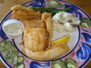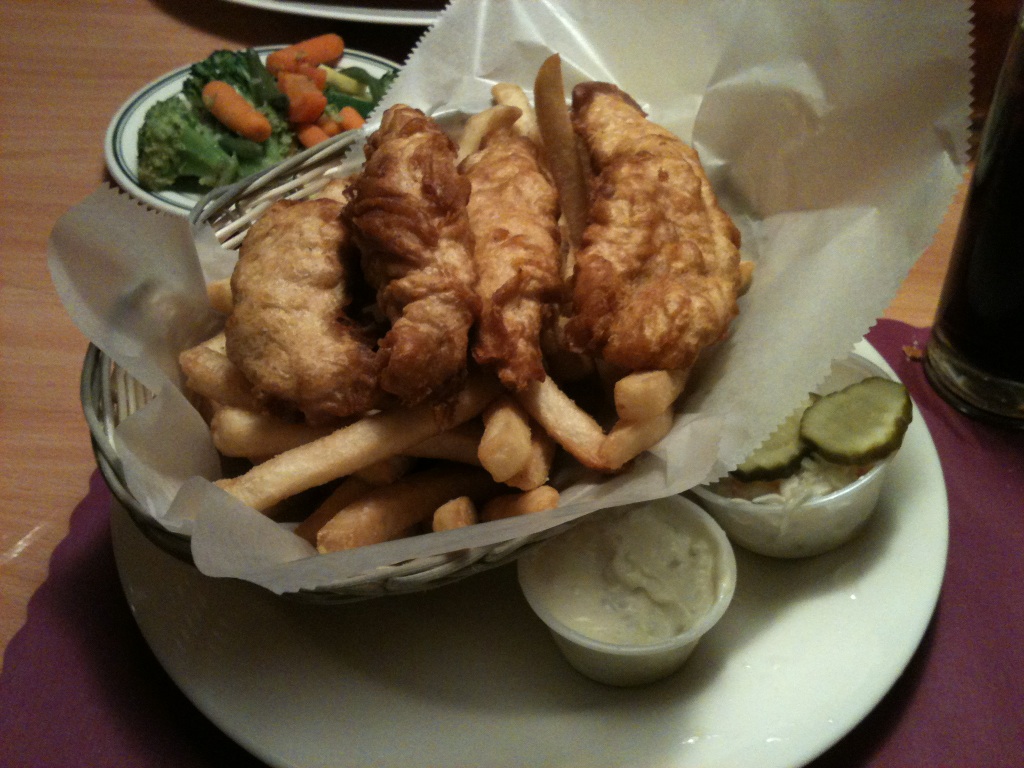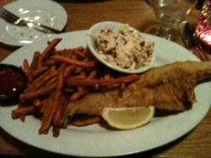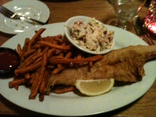 The battered haddock was tasty and the cole slaw and sweet potato fries that came with it were excellent.