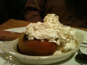 The sleeper hit, though, was the apple dessert. The cored apple was stuffed with maple syrup, walnuts and raisins.